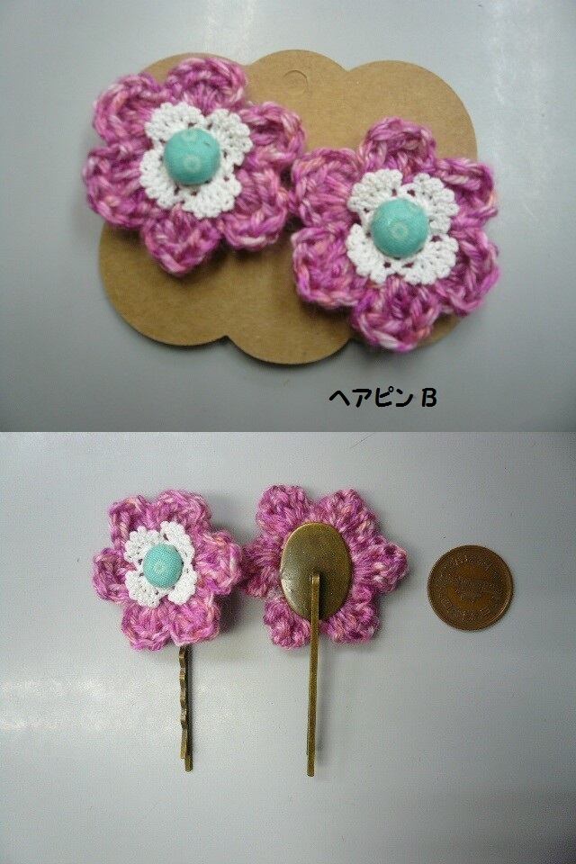 NY直輸入☆NY小物作家/ハンドメイド☆ 手編み ニットお花ヘアピン 2個セット