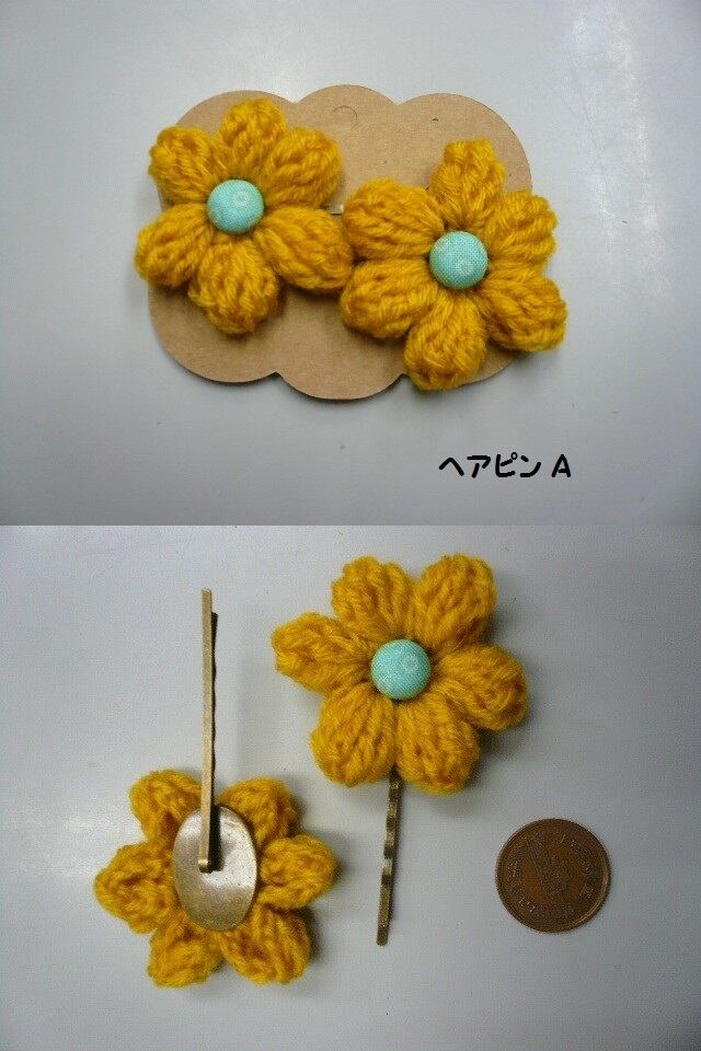 NYのThe Unioin Square Holiday Market( ユニオンスクエア・ホリデー・マーケット)に出品している、NY在中の小物作家さんのハンドメイド ニット お花ヘアピン 2個セット です。