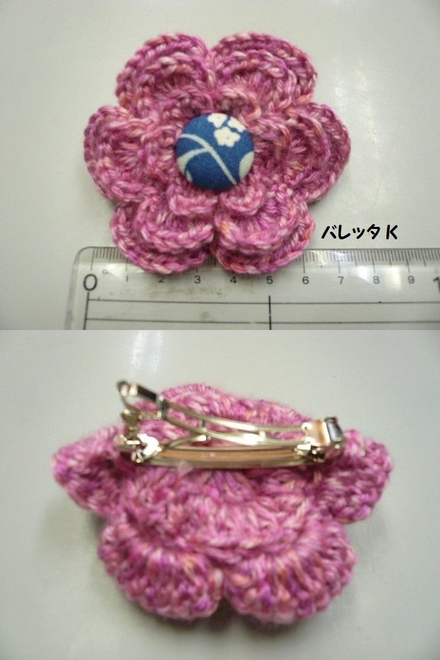 手編み 毛糸/ニット お花バレッタ
