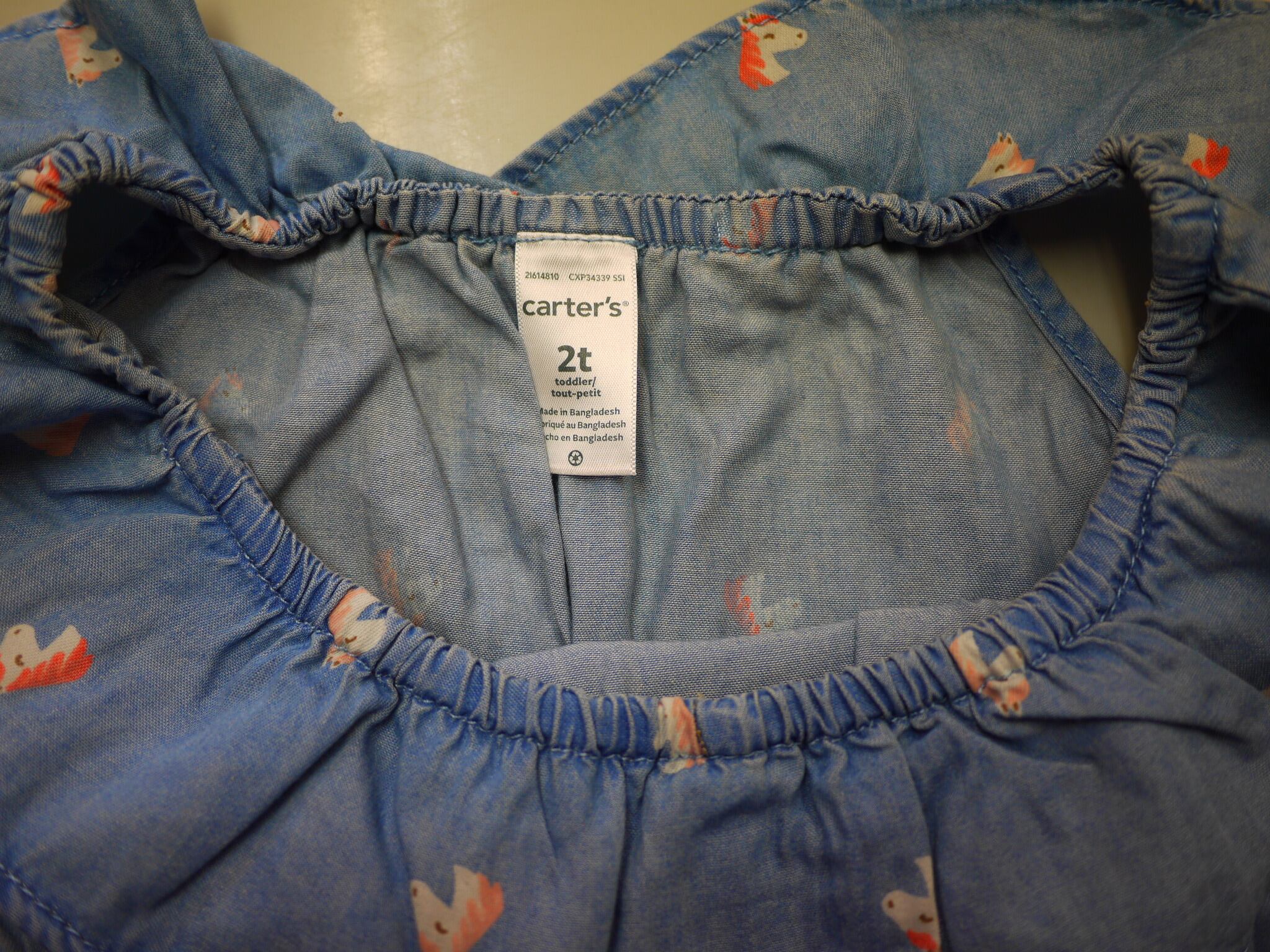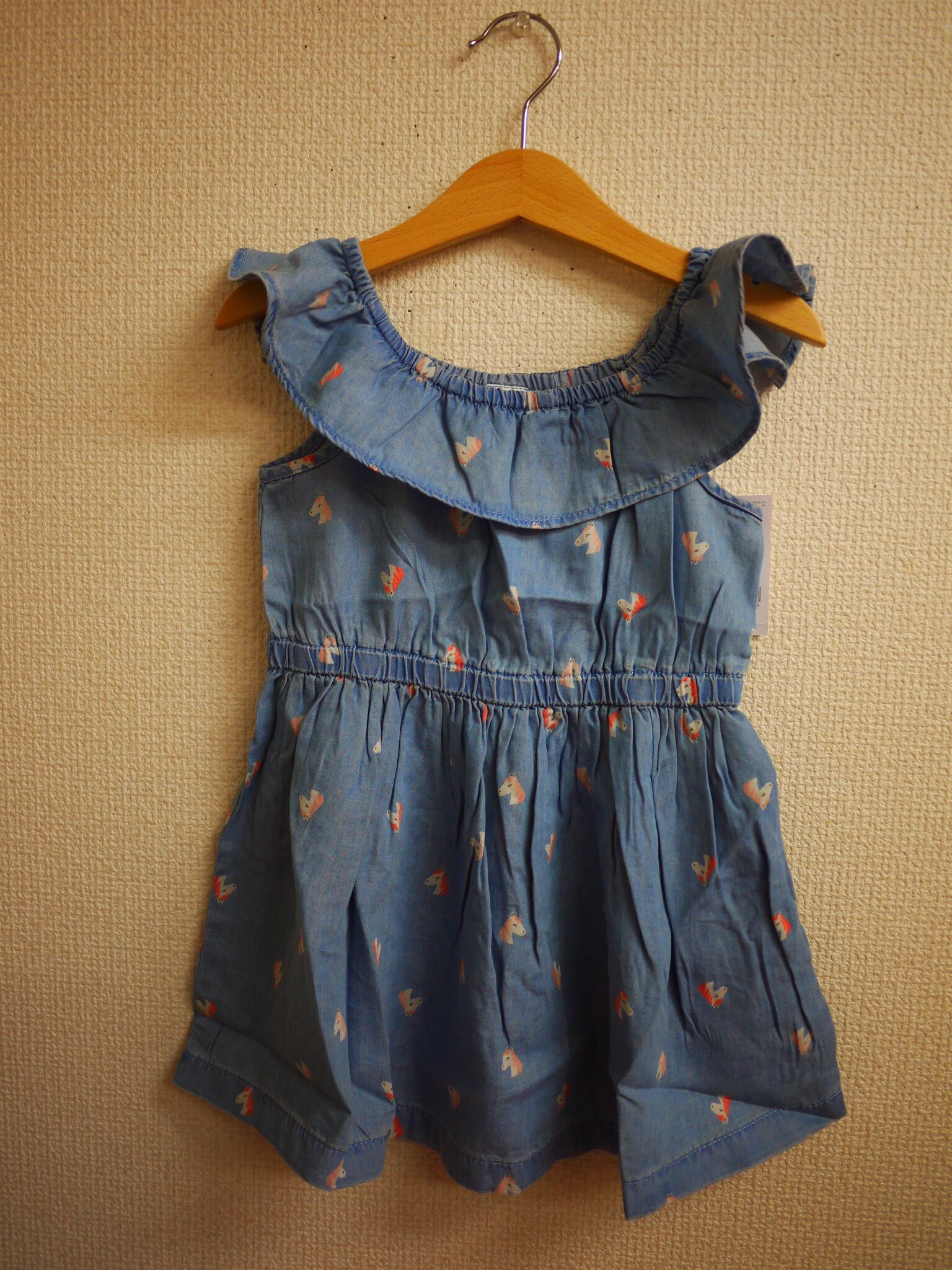 Sale/NY直輸入☆carter's/カーターズ☆ポニー プリント 衿フリル ダンガリーワンピース