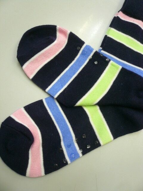 こちらは、ネイビー×カラフルボーダー柄 ボーイズソックス です。