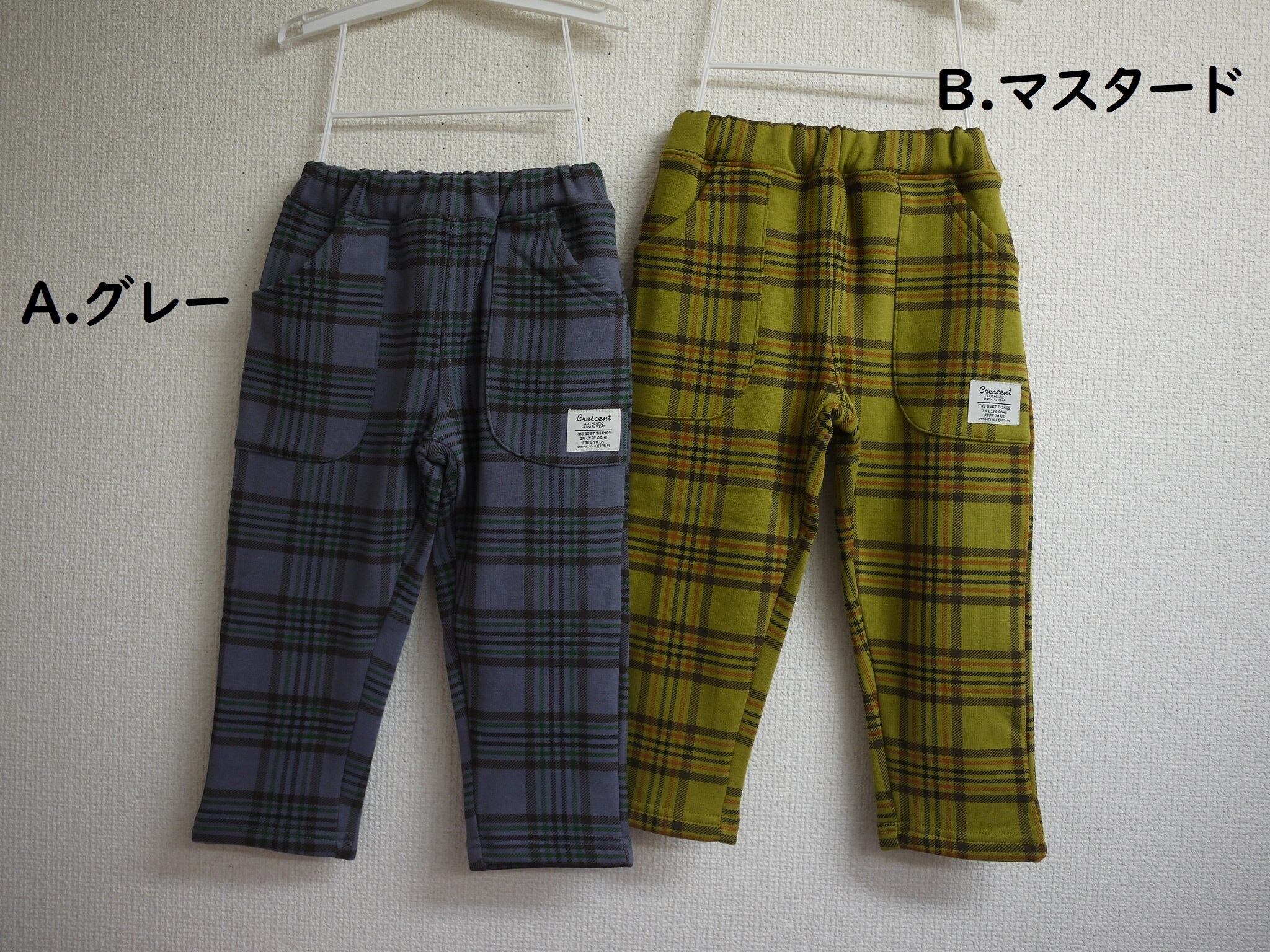 裏シャギー チェック柄 パンツ 100-130/グレー/マスタード