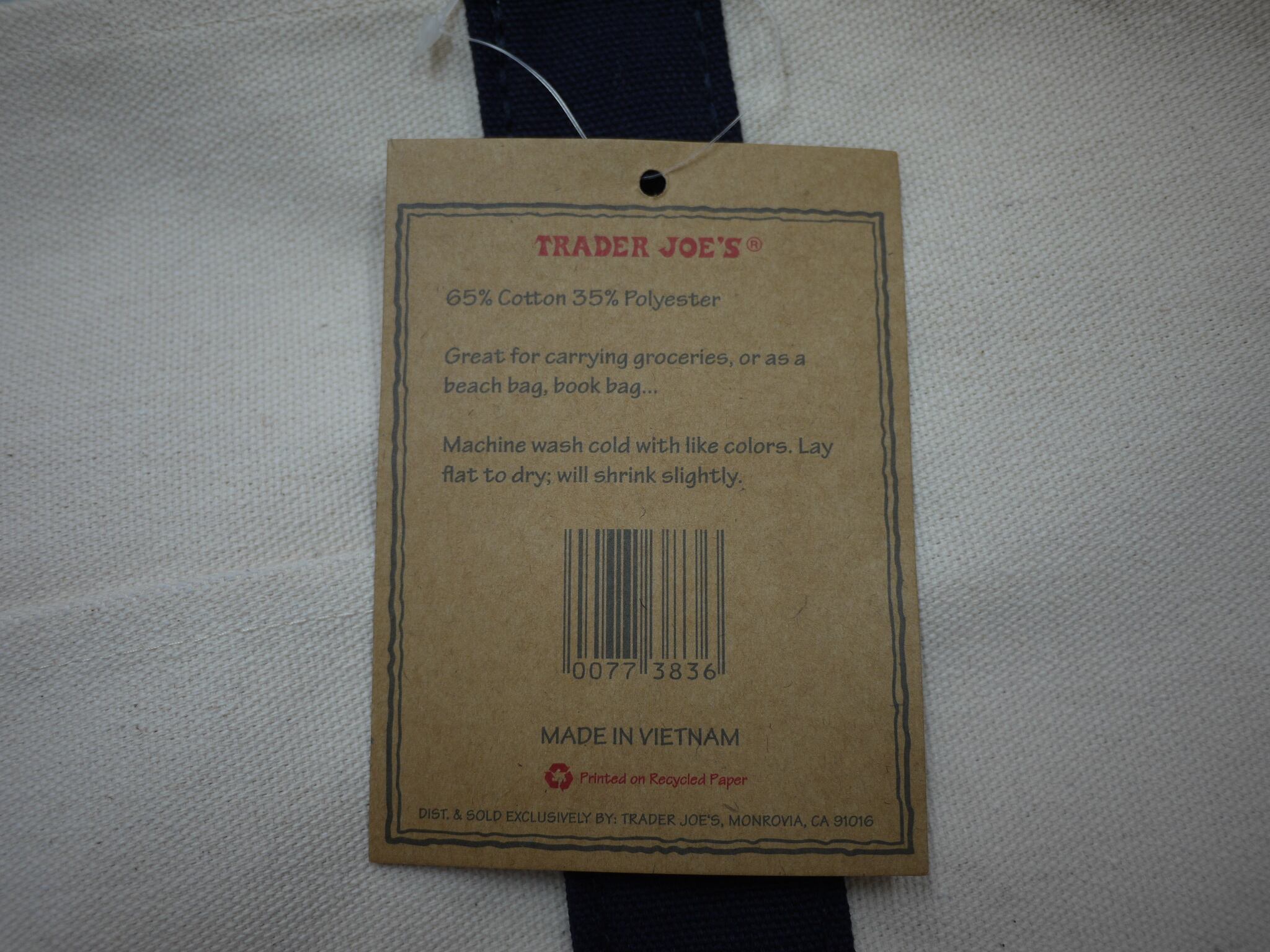 こちらは、アメリカのオーガニック高級スーパー【トレーダージョーズ】のキャンバス生地 トートバッグです。