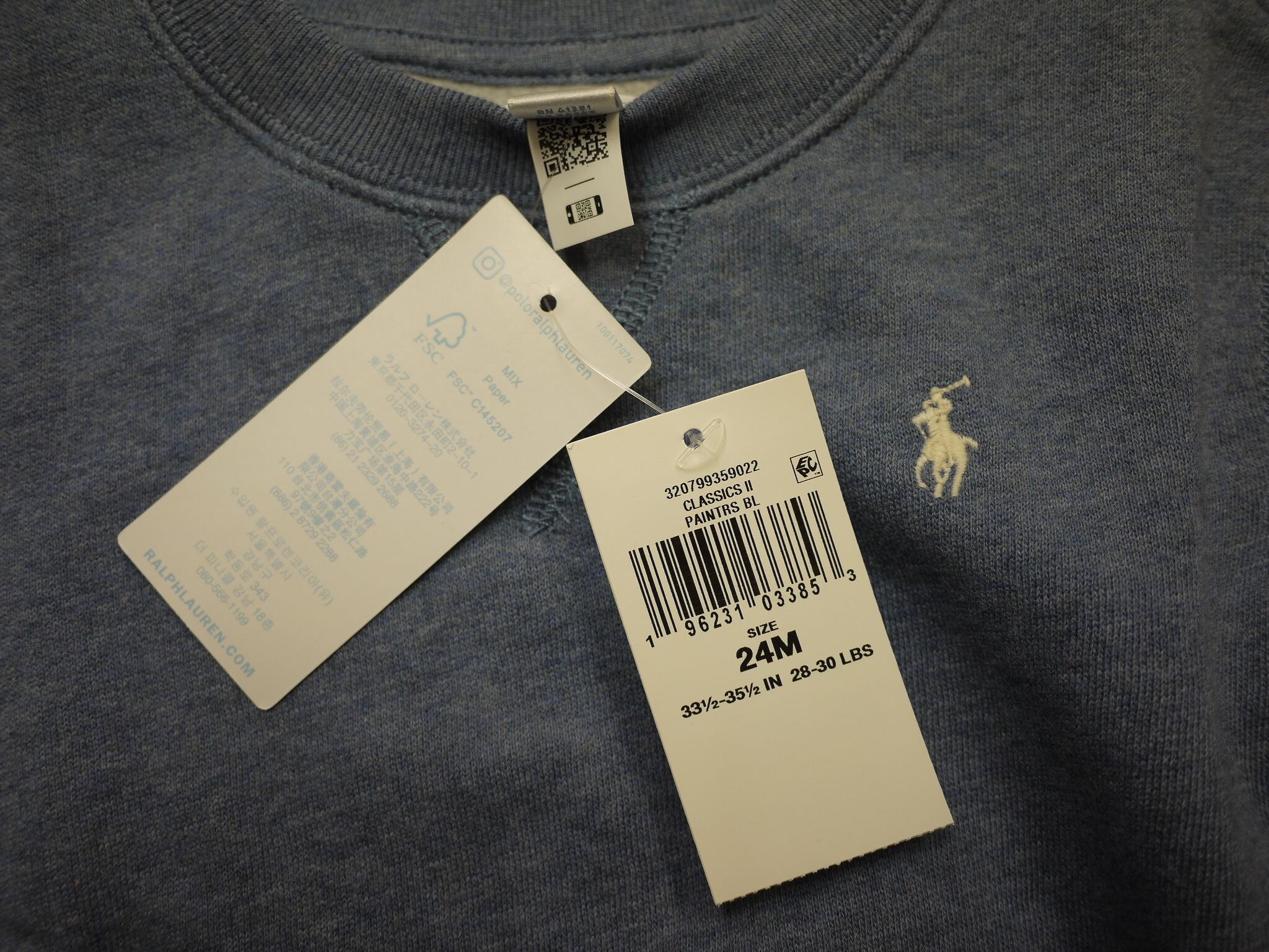 NY直輸入☆POLO Ralph Lauren/ラルフローレン☆ 24m/90/N/ポニー刺繍 裏起毛トレーナー 24m/90